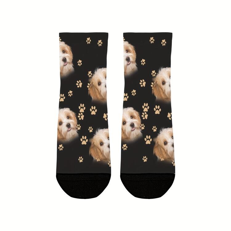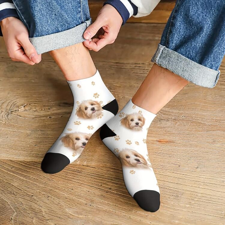 カスタムペットフェイスソックス、パーソナライズされた面白いギフトアンクルローカットソックス、カスタマイズされた写真付き、ティーンエイジャー向けの斬新でトレンディなクルーパーティープレゼントソックス